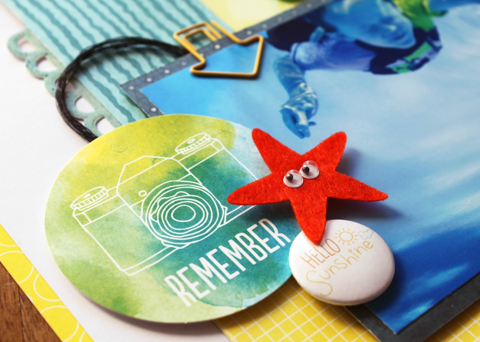 To the left of my photo, I added a die cut from the November Just Add Paper kit, another starflower, and a Freckled Fawn arrow paperclip.